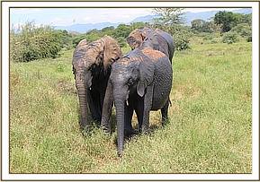 wallowing styles and the muddy mudbath changed their body colour to dark elephants instead of the normal grey colour. The changing of colour did not