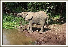When they finished feeding on the bottles, they all felt very hot and the orphans went to the waterhole and spent a long time wallowing with lots of funny wallowing styles. Sonje enjoyed sitting in the water hole to wallow and Ngasha quickly copied Sonje's unique wallowing style.