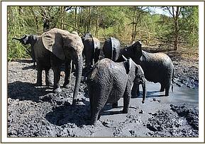 Quanza, Zongoloni, and Lima lima took the babies for a mudbath when the weather became very hot and they needed to wallow and cool down. All the