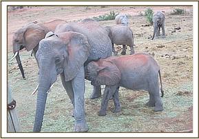 Sities did soil bathing before returning back to the browsing field. In the afternoon, the orphans browsed calmly taking their fill of food. In the evening, the ex orphans reported at the stockade for water again and hung around with their little friends for a good long time. A male lesser kudu who was ambling close by got into trouble with orok when orok charged but he stood his ground which rather unnerver Orok who was expecting more of a reaction.  Orok kicked dust and decided to go for the kudu.   Finally when the kudu saw Orok approaching even closer in threatening mood he ran away with his white tail flashing just as he melted into the grey bush beyond the stockades. Missing in the ex orphans group were bulls Napasha, Tomboi, Buchuma and Madiba.