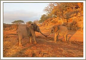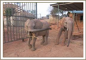 Bongo and Garzi putting trunks in their mouths