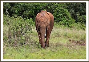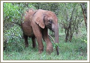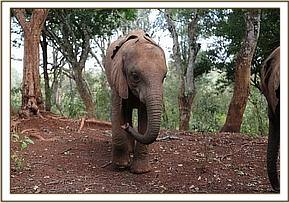 This morning the orphans appeared calm and relaxed as they walked about in the forest browsing as they went.  Kamok and Ngilai were sneaked away from the rest of the group and were found browsing in the bushes close to the parking area which has become Kamok’s chosen area to browse in the morning hours.  At about 9am the two rejoined the rest of the Nursery herd after Ngilai started making a fuss as he realized that it was time for the morning bottle and Kamok did not seem to have any desire to rejoin the group and drink some milk.