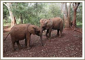 In the morning when the orphans headed out to the field Oltaiyoni and Sirimon were seen walking around and among the orphans looking for the playmates that had left in the early hours of the morning.  Sirimon was busy looking for Enkikwe who he often played with while Oltaiyoni searched for Siangiki.  It was not long before they stopped searching, realizing that their friends had left at which point Sirimon engaged Sokotei in a pushing game while Oltaiyoni returned to her matriarchal duties.