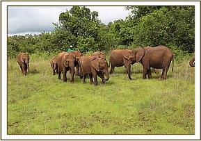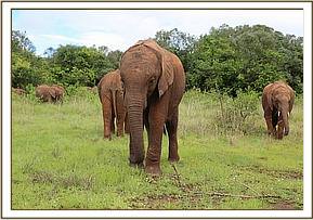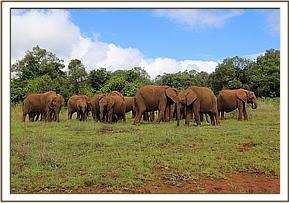 It was a very cold and wet morning due to the fact that it rained all night and continued to rain for the better part of the day. Due to the bad weather Balguda and Galla did not want to leave their stockades and join the rest of the nursery orphans who were joyfully heading out to the forest and fields for the day.  Upon seeing that Galla was not among the group Mbegu headed back to the stockades and marched straight into Galla’s stockade in an effort to get him to join her out in the rain. Galla was having none of it, preferring to stay dry and warm rather than get wet, and so Mbegu left Galla in his stockade until such a time that he felt it was warm enough for him to join the rest of the group.