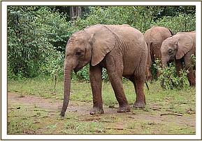 During the public visit Ngilai chose not to come down to the mudbath and milk feed area together with his usual group. He instead joined the older orphan group which comes to the mudbath about half way through the public visiting hour.  The reason for this change is due to the fact that Ngilai has become very attached to Kamok.