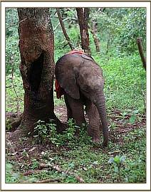 Pod was on our minds throughout the whole night and this morning the orphans came out of their stockades and were led back to where Pod was last seen in the bush. Together with Pea and Kiko everyone searched the bush but all in vain. We were sure that Pea was worried and she has been with Pod since birth; she just walks around the forest with her head held high and not really grazing at all. Kiko did not leave her side, but we are not sure if Kiko really understood that Pod was missing, only that something was amiss with Pea. Alamaya and Sokotei cut short Pea and Kiko’s search by sending them off back to the baby group who they spend most of their time with. Once with the babies Pea just sat on the ground as if in full thought.