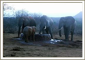 As usual the orphans left their Night Stockades early and went to drink at the trough before Melia led them out to browse. Soon after the elephants had left 3 wild dogs came to drink at the Stockades. At the noon mudbath the Juniors were joined by a wild bull before heading back to browse during the afternoon, returning in the evening to the Stockades.