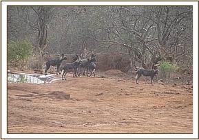 Kalama led the Orphans out on another hot day. Once at the Browsing Area Kandecha engaged Kibo in a Pushing game, but Kandecha withdrew when Sabachi entered the fray. At 10 a.m. Challa, Rapsu, Madiba, Sidai, Taita, Lualeni and Nasalot joined the Juniors and fed amongst the Juniors at the Kanziku area until 11 a.m. when Kandecha led Kibo, Olare, and Murka in the first sitting for their milk.
