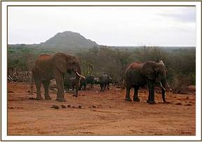 Before the orphans left their Night Quarters, five buffaloes and 6 wild elephants came to drink at the Stockade water trough. Out in the field a troupe of baboons scared the Juniors, who ran to their Keepers for protection. At the mudbath venue the Juniors were joined by Yatta’s wild recruit named Kijana, 2 younger wild elephants, Nasalot, Wendi, Mulika and Yatta. Both Yatta and Mulika are heavily pregnant now, and we are expecting them to deliver around Decmber or January next year since they conceived in February 2010. After the mudbath Yatta and her group headed eastwards while the Juniors returned to the Kanziku area. In the evening 6 wild elephants and 5 wild dogs came to drink at the Stockades. One of the wild elephants charged the wild dogs who stood their ground and went on drinking!