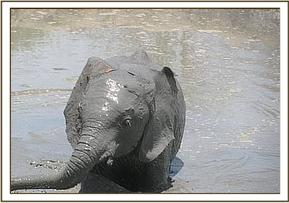 Led by Kalama, the orphans headed out to browse, swinging their trunks happily from side to side, but by l0.30 a.m., the scorching sun drove them all under shade. Today it was Naisula who led the way to the mudbath, after which the orphans relaxed under shade waiting for the heat to subside.