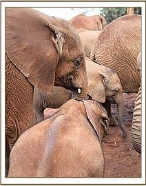 Kinango has lost a great deal of condition during his teething process (the eruption of the first four molars always causes difficulty in the infant elephants). He is still feeding well, and his stools are firmer, but he has undergone an infusion of Saline and Dextrose to restore his strength. Mutara gives him a great deal of love and attention which he needs. Little Rukinga is still doing well and along with Barsilinga enjoys remaining close to the Keepers, unlike Kinango and Kithaka who enjoy the company of the Big Girls more.