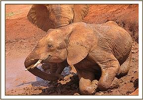 Out in the field the Orphans browsed amidst a friendly wild herd for about two hours before moving to the waterhole for their noon mudbath, which they all enjoyed.