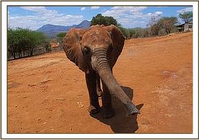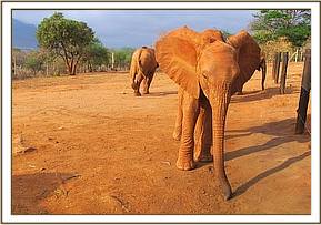 Yet again, poor Shimba was unable to get up in the morning without the help of the Keepers. While all the others were running around enjoying their usual Stockade compound antics, Kivuko, who is tuskless had the supplements to herself. Many other residents also enjoy the pickings such as the resident hornbills who wait patiently outside the Staff canteen for their share of “chapatti”. Taveta decided to initiate a Pushing Game with little Panda, which caught the attention of Wasessa who moved in to ensure that there was no bullying. Having decided that he meant no harm, she returned to the Lucerne pile, not noticing that Taveta then tried to mount onto Panda. She dodged at the last minute, leaving him biting the dust. He then walked away sheepishly! At l0.45 having browsed all morning the orphans headed for the Big Waterhole where they drank, since the bins had been emptied. Kivuko was left kicking them around to show her disgust! It was a cool day, so the orphans just splashed themselves and took a dustbath instead.