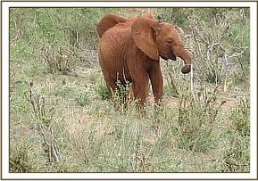 Shimba walked slowly to the Stockade waterhole to quench his thirst after the others had finished, nervous of being shoved around in his weakened condition. Tassia then led the Orphans to the top of Mazinga hill where all browsed silently. Tassia, Wasessa, Mzima and Lesanju then climbed even higher but Lempaute found a tasty tidbit behind a rock, and devoured it quickly before the others homed in! Back at the Stockades Shimba, Mbirikani and Mudanda enjoyed their noon milk feed, Mbirikani splashing water onto her injured foot and Mudanda paced up and down, anxious to return to the browsing area.