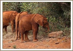 When the orphans arrived out in the forest this morning, some were busy browsing and others like Kauro, Tusuja, Roi, Mbegu, Maramoja, Rapa, Naseku, Lasayen, Ndotto, Dupotto and Godoma were all rolling around in the wet soil and little mud baths following the shower of rain we had last night. Kauro and Roi rolled on the soil as Ndotto, Rapa and Lasayen all enjoyed climbing, bumping and sliding on them. Naughty Rapa was trying to bully Ndotto and Lasayen away from Roi so that he could enjoy sliding on her himself – but they teamed up together to try and push him away too!