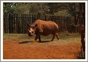 Early in the morning the orphans were busy walking out of their stockades when Maxwell our blind rhino woke up and it seemed he was in a playful mood. He was running and charging up and down his stockade, tearing at the ground with his horn and about what we were not sure! Maybe it’s because the orphans were busy browsing alongside the outside of his stockade? When naughty Kamok and Kauro saw him behaving this way they both reacted by trumpeting. This caused Max to turn back and knock against his gate trying to find where Kamok and Kauro were, but they had both already run into the forest! After sometime and after all the elephants had moved into the forest, Maxwell folded his game and went back to peacefully walking around his stockade.