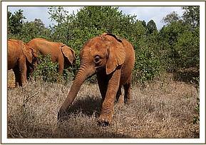 When the orphans were out browsing this morning, Tagwa, Malkia, Wangala, Pare, Maramoja, Sana Sana and Esampu decided to go their own direction. Led by Esampu and Malkia their mission to what seemed like the mud wallow took a new turn when they came across a troop of baboons. Upon seeing the troop Malkia and Esampu got scared and took a u-turn running through their friends behind them and rumbling in protest. This caused the baboons to shout as well and suddenly all the babies were scattered and yelling out. This attracted the attention of Mbegu, Roi, Dupotto and Oltaiyoni who ran out to find out what was happening. They bellowed loudly and trumpeted with their ears spread wide as they called Esampu’s little runaway group towards them. Their trumpeting caused the baboons in the trees to jump up and down and shout as well, and in return Oltaiyoni’s group got very angry and started charging around, pushing trees and one tree Oltaiyoni pushed down forced a baboon to jump from the branches. The commotion saw the rest of the herd run to assist Oltaiyoni and the others scare the baboons away and they ran off. The orphans remained restless for some time after that but then they soon calmed down, especially with the reassurance from their keepers.
