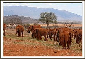 The four Ex Orphans followed Kenia's herd to the browsing grounds, leaving them a short while later for the middle waterhole where they enjoyed a mudbath before making their way to the Voi River area.