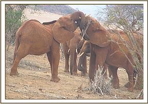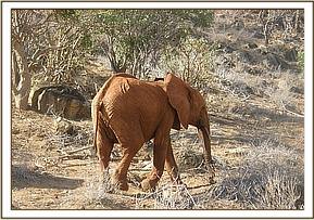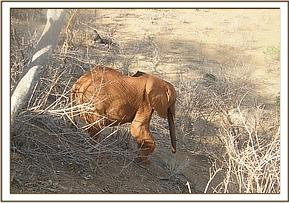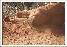 It was a nice and bright morning with the four Ex Orphans arriving at 8.20am, after the stockade dependant orphans had left for the browsing grounds. They enjoyed a drink from the stockade water trough before feeding on supplement foods. Two hours later, Dabassa and Layoni left for the Park, leaving Lempaute and Kivuko at the stockade. The two girls enjoyed a scratching session against the rock boulders before having a lovely dustbath in the red soil piles that had been brought in for them.