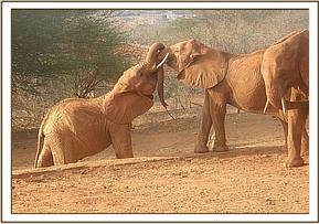 While enjoying the supplements Layoni engaged Nelion in a strength testing game which seemed to disturb Kenia’s herd who made the decision to leave for the browsing fields.