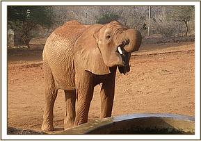 Ndii was in a naughty mood again and climbed into the water trough, with her front legs swirling the water around turning the clean water dirty; Arruba, Mbirikani, Embu and Rorogoi decided against having a drink. Arruba went to scratch her bottom on the top of the water trough while waiting for the dirt to settle so that she and her friends could quench their thirst before the orphan herd continued with days browsing activities.