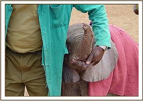 Naserian was very restless today, wanting to return to the stables to be with the new baby. The Keepers had to turn her back when she persisted in trying to sneak away from the other orphans.