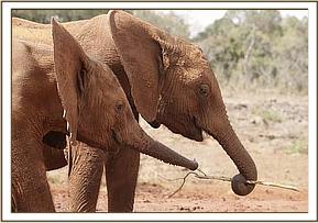 The new baby from Tsavo East National Park called Kigelia joined the other tiny calves and was welcomed by Tano, who is the leader of that tiny group of newborns.