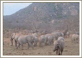 Mshale, Rafiki and 34 wild Elephants reported for a drink at the Stockades in the morning in amongst whom, amazingly was our Ithumbah. Later Lualeni and Kora turned up. When Mshale, Rafiki and all their wild colleagues left, they took Ithumbah with them while Lualeni and Kora followed the direction taken earlier by the Juniors who were browsing the Kanziku area. It was a quiet mudbath for the Juniors since no Ex Orphans or wild Elephants showed up. In the evening, Ithumbah came again to the Stockades, this time in amongst a wild herd, leaving along with them later.