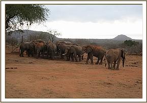 Kandecha, Kitirua, Ishanga and Naisula joined the Ex Orphans and their wild friends when they came again to drink in the morning, and remained with the Ex Orphans when their Junior colleagues left for the field. At mudbath time half of the Ex orphaned group with 2 wild Bulls joined the Juniors while 40 other wild elephants came to the Stockade water trough for a drink. Kandecha, Naisula, Ishanga and Kitirua were escorted back to the Stockades by a Splinter Group of Ex Orphans at 4 p.m. and awaited the arrival of their colleagues, who returned as usual at 5 p.m. The four then went back into their Night Stockades along with the others, as usual, having had a day’s outing with the Ex Orphans.