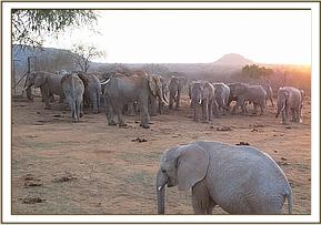 It was a hot day, and given the arid nature of the surrounding environment, the Stockade compound was filled with Elephants, both wild and Ex Orphans, as was the mudbath venue and at the Stockades again in the evening. At all three venues, in amongst hordes of wild Elephants were our Ex Orphans and their two wild-born babies.