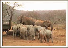 At mudbath time the Juniors were joined by Lualeni who wallowed and dusted with them. Chemi Chemi engaged Ololoo in a Pushing Match which was won by Ololoo who was then taken on by Kilaguni which ended in a draw. The two contestants then followed the direction taken by their Junior colleagues who were with Lualeni.