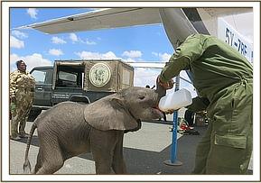The calf was to spend a night at Amboseli Park Hqs so that it could be collected the next morning by a chartered air plane. It was given plain water and was still strong. It was kept in a padded warm room till the following day. There was frequent contact with DSWT on the progress of the rescue exercise and status of the calf.