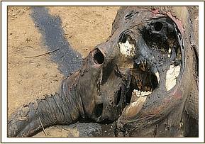 The carcass had been mauled by scavengers and most of the organs destroyed. The G.I.T system had very little ingesta showing that the elephant had been off feed for a considerable period.