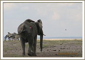 This adult male elephant was spotted within the park by The Amboseli elephant research personnel while on their routine programme. A serious freshly inflicted wound was clearly visible. The vet team attended to the case and a decision was made to immobilize and treat the elephant Darting was relatively easy from a land cruiser.
