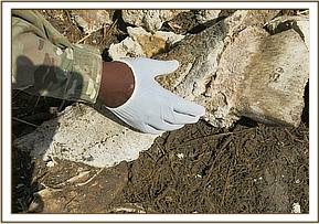 -The carcass was tossed on to left recumbence and conspicuous were several tearing wounds on the left hind and fore limbs laterally midway. The hind went through the cartilage of genu joint interfering with joint integrity and surrounding soft tissue. The fore one though latero-caudally on elbow joint didn’t get into tge joint itself but damaged the soft tissue only. All wounds had foul smell with necrotic tissue present.