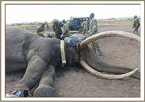 The elephant was revived with 36mgs Diprenorphine Hydrochloride into jugular vein. It was completely revived in three minutes and walked away.