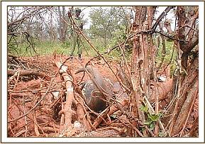 The rain continued into the beginning of the month. The poaching incidences were found to be lower, a factor that can be contributed to the rainy season when many people are tendering their farms. However not everybody was keen on farming since a number of snares were freshly laid. Just outside the gate at lion hill, 46 snares were recovered which were freshly laid and an Impala with a snare was seen in the same area. All of the snares recovered were medium sized. These snares were found in the area between park access roads and the Voi River which is regularly visited by a large group of Impala. On the other side of the road adjacent to the hill a foot path was found entering the park through the fence heading toward Voi safari lodge area. We patrolled the area for several days trying to locate the destination of the path but with no success. However on our way to patrol, we sighted two people from our vehicle who ran away on seeing us and hid in the bush. We circled around to the outer side and laid an ambush from the foot path, one of the team leaders stood on a hill to keep watch and the rest of the team pursued the perpetrators from the inner side. After three hours wait and patrol we located them carrying a load of fire wood. We captured one while the other escaped. The caught poacher denied setting snares but admitted to collecting wood in the park for fire wood.