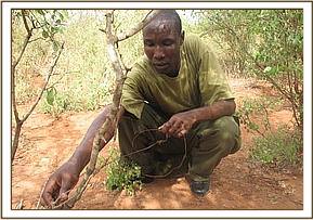 Mgeno ranch Borders Taita sisal estate and is east of the Mwatate Township. It is about 50,000 acres and is owned though shareholding by about 400 members. The vegetation is mainly bushy acacia-commiphora. The ranch has two dams which have water year round and are thus a vital water source to the wildlife in the area. We lifted only one snare during our patrols with one of the herders. We feel that the herders are probably engaged in poaching as they were reluctant to show us around the ranch. The ranch manager is collaborating with charcoal burners by allowing them to set up kilns in the ranch in return for a cut of the profits.