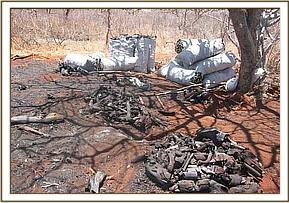 The team started their patrols in this area at the beginning of the month. This area has very high levels of poaching activity. The team found remains of five giraffes that had been killed & slaughtered by poachers as well as one impala carcass that had been snared.