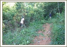 During the second week of the month the team set out on a de-snaring exercise which started from the Mkua-Nima park boundary. Along the park boundary we observed that people are entering the park in order to cut building materials for building food stores. Charcoal burning is prevalent both inside and outside the park. Some people enter the park in order to cut trees into small portable pieces and then transport it out of the park for charcoal burning.