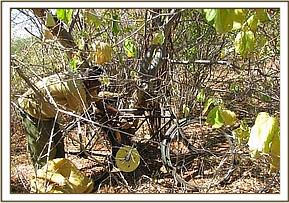 Lagga-kugu, Umbi, Kanziko These areas area all found along the park boundaries. During the team’s patrols we were able to identify fresh footprints that led us to a poacher’s camp. At a distance of about 200 meters from the camp a shooting platform had been erected. The poachers use the platforms to target large animals. We were also able to lift 25 snares from these areas.