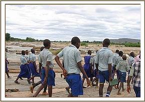 During the ecological trip the students saw herds of elephants, buffaloes, and giraffes. They also saw baboons, jackals, impalas, warthogs, lesser kudus, lions, dikdiks, waterbucks and a cheetah.