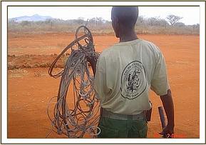 This area has not been properly patrolled for the last three months. During the rainy season the animals move to different are and for this reason the poachers do not set snares in the Sanctuary. During the dry season the animals tend to migrate back to the Sanctuary where there are water sources at the Bura River and Bura Dam. 13 snares for big game were recovered and a new type of snaring was identified whereby the poachers use rope instead of wire to make the snares.