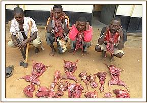Out of the 4 poachers arrested, one was caught checking his snares and other three arrested with over 23kgs of bush meat from Dikdik and warthog all harvested within the Sanctuary.