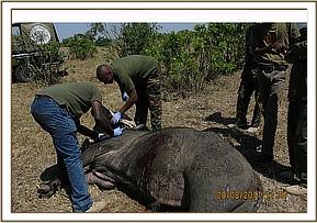 Considering the age of this elephant, all these findings point to expected geriatric associated complications and this elephant died of old age. The tusks were retrieved and taken by the county security team for custody and accounting.