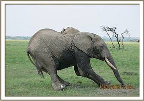Reversal was achieved by intravenous administration of 48mgs Diprenorphine Hydrochloride through superficial ear vein. An additional intramuscular administration of 150mgs Naltrexone was also given. The elephant woke up within two minutes and headed straight into a bush.