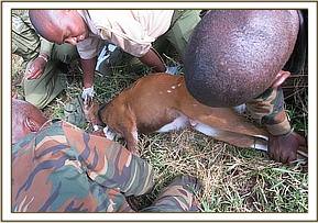 Four bushbucks were captured using the net capture method while three Waterbucks were darted using a combination of M99® and Domitor®. Cattle were restrained using ropes and a crush.