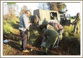 This black rhino was reported to have shown a staggering gait and reluctance to move even when approached on foot or by vehicle. It had also separated from its 2 year old calf. The warden in charge requested for a veterinary evaluation of the rhino to determine the cause of its ill health.