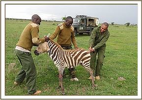 The wildlife monitoring team in Solio ranch reported two zebra with wire snares injuries on their legs. We visited the ranch on 29/11/17 to remove the snares and treat the wounds.