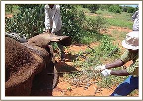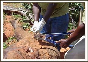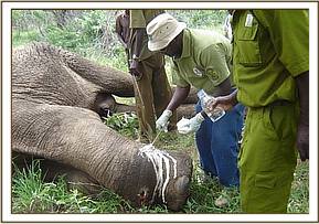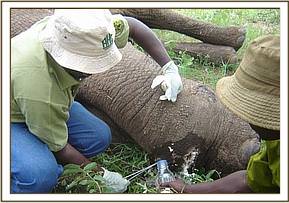The activities started with the treatment of a bull elephant at Taita ranch with two arrow wounds on the lower left fore leg.